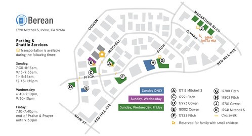 Sunday (Lot G and Lot J): 7:30-8:15am / 9:15-9:55am / 11-11:45am / 12:45-1:15pm